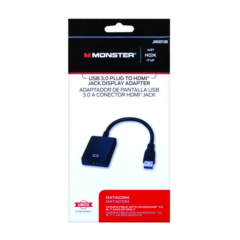 - USB 3.0 plug to HDMI jack adapter (COMPATIBLE WITH WINDOWS 10, 8, 7 AND XP ONLY)