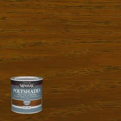 Minwax PolyShades combines stain and polyurethane in one simple step. Each coat provides rich color and lasting protection while enhancing the wood grain. This product will reduce finishing time compared with staining with one product and protecting with another. PolyShades stain and polyurethane also allows you to easily change the color of your currently stained or varnished wood without stripping. Over old varnish you can change the color without removing the old finish or hiding the grain. For additional protection, without adding color, add a coat of Minwax fast-drying polyurethane or Minwax wipe-on poly. Using a natural bristle brush, dip approximately an inch into the can, gently tapping it against the inside to remove any excess. Apply a very thin, even coat following the direction of the grain. Make sure to maintain a “Wet” edge. To minimize the brush marks and bubbles after staining, tip off the surface by holding the brush at a 45 degree angle and lightly run the bristles over the entire length of the wood. Let the first coat dry for 6 hours or more. Dry time may be extended due to high humidity, low temperature and inadequate ventilation or if the coat is applied too thick. Rub the surface lightly with fine steel wool. Remove all dust. Brush on a second thin coat following directions above. To deepen the color, apply a third coat. To help ensure uniform acceptance of stain color and beautiful results, pretreat new or raw wood with oil-based Minwax pre-stain wood conditioner, following label directions.