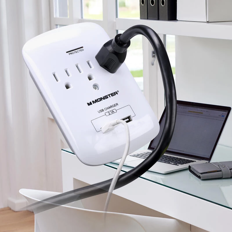 - Grounded outlets with full 3 line protection with 2 USB ports