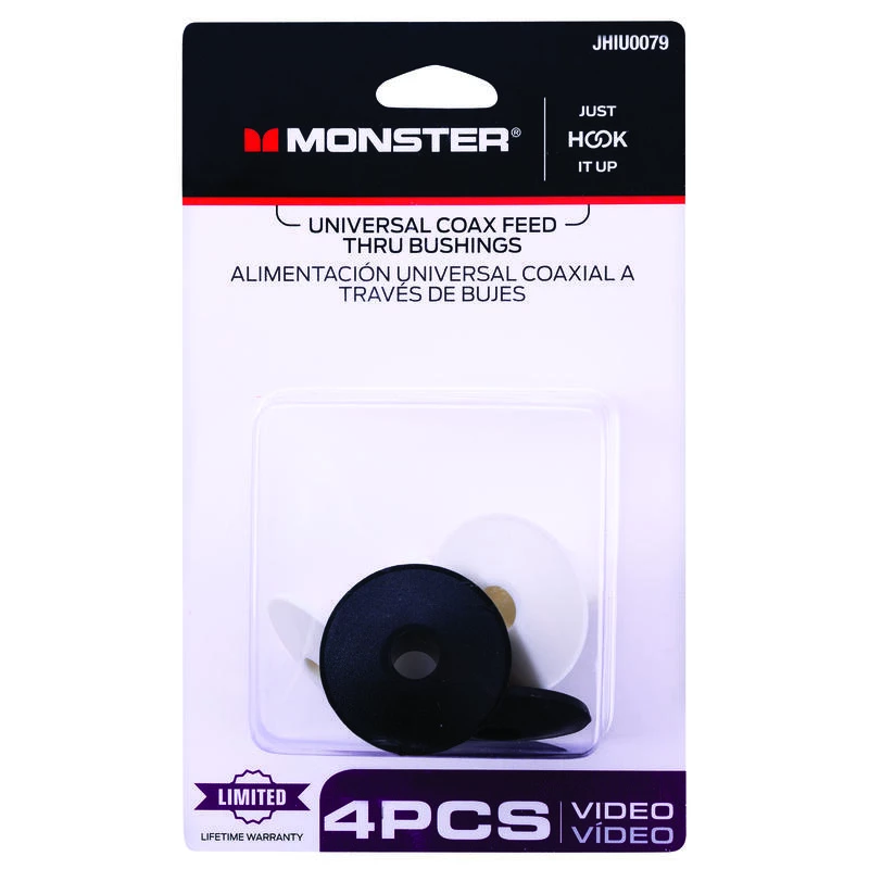 Bushings are used to seal wall openings and protect single coax cables as they pass through wall openings. They are weatherproof, UV resistant and rodent resistant.