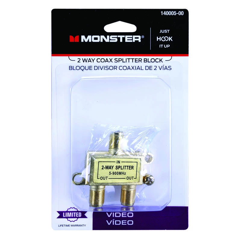 - Splits single 75 ohm coax input into 75 ohm coax outputs