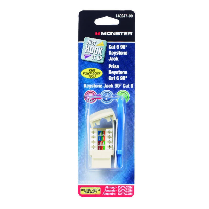 The Category 6 Keystone Jack is used for super fast internet, modem or computer networking. This RJ45 Jack (8P8C) is a 90 degree 110 Style IDC Jack and UL Listed. Use Category 6 wire for proper installation. It can easily be mounted into a keystone wall plate or surface mount box.