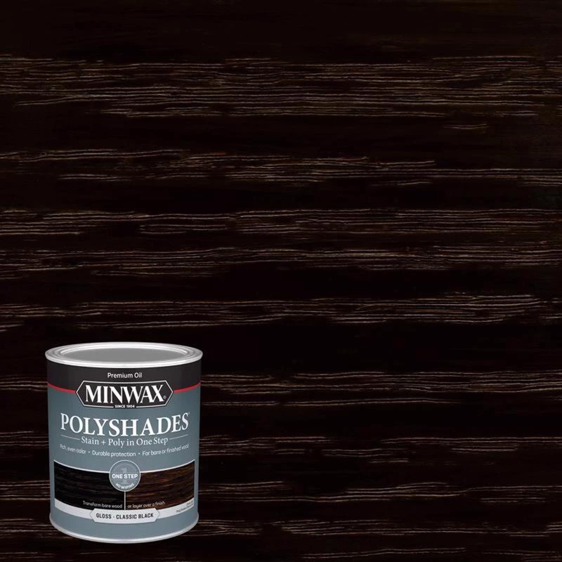 Minwax Polyshades combines stain and polyurethane in one simple step. Each coat provides rich color and lasting protection while enhancing the wood grain. This product will reduce finishing time compared with staining with one product and protecting with another. Polyshades stain and polyurethane also allow you to easily change the color of your currently stained or varnished wood without stripping. Over old varnish, you can change the color without removing the old finish or hiding the grain.