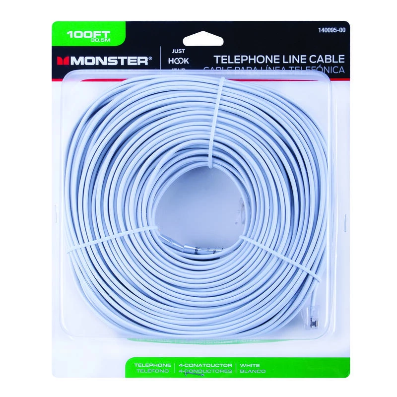This telephone line cord has modular plugs on each end of the cord. It is used to extend or replace an existing modular line cord.
