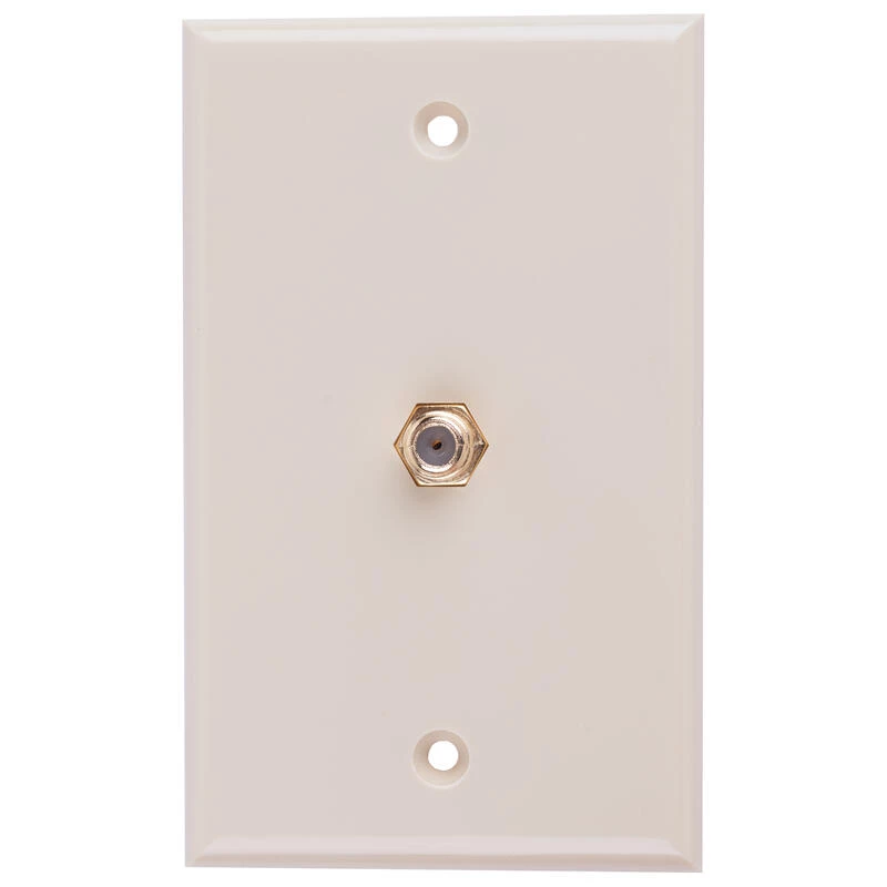 The white coaxial wall plate from commercial electric provides the highest quality connection for today’s digital audio/video equipment.